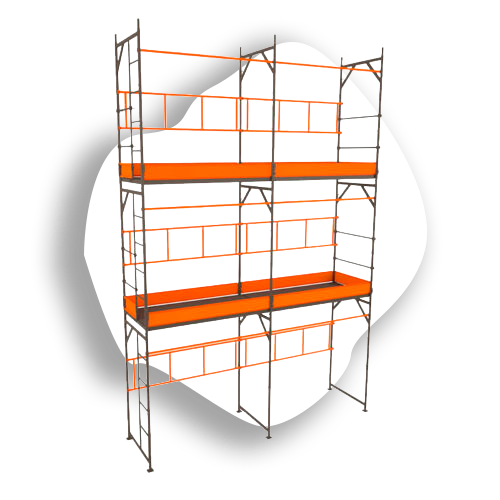 Esses andaimes são projetados para cobrir grandes superfícies verticais, como fachadas de prédios, e são geralmente mais robustos e estáveis. A escada é incorporada ao painel de andaime.